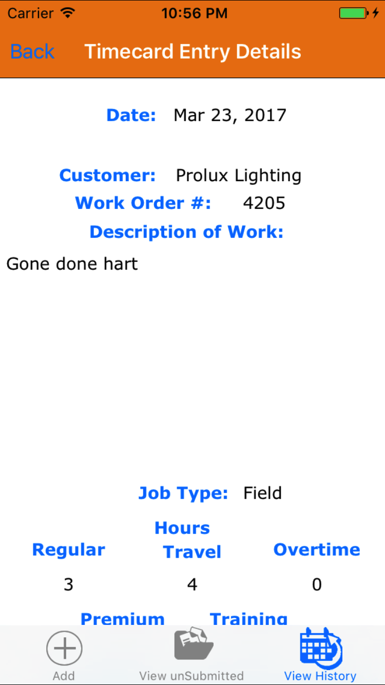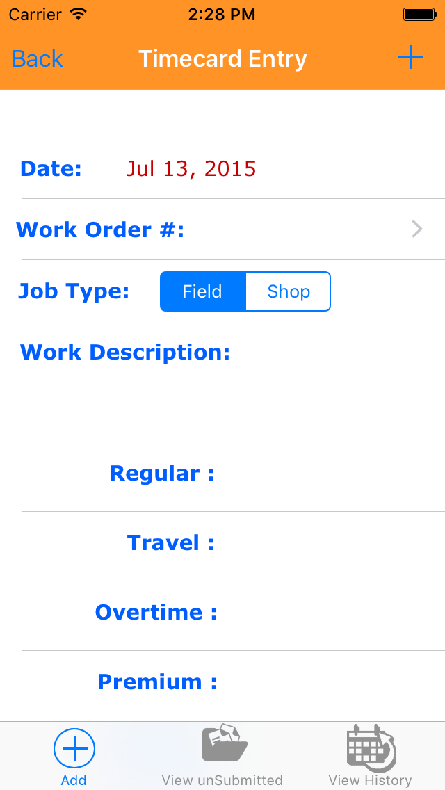 a field marking the time spent working as either field work or shop time. The time entered can be