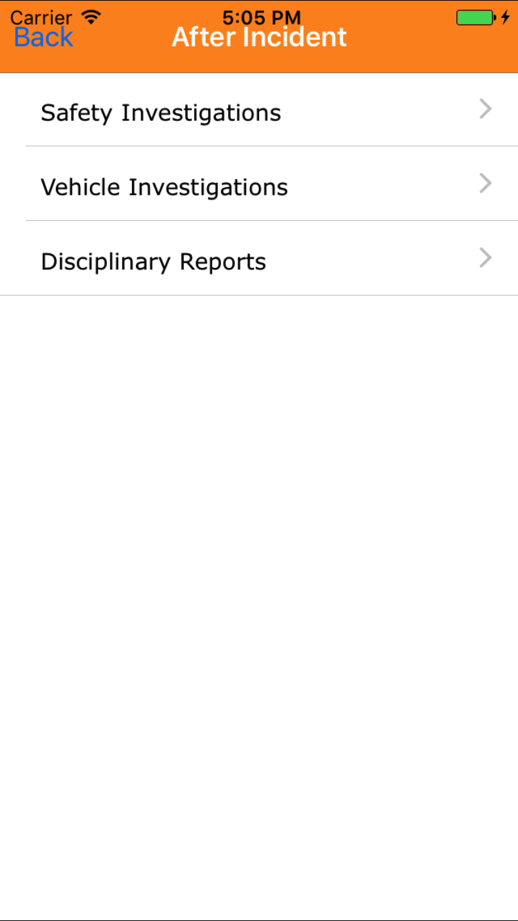 - Tap the desired vehicle to select it or tap Back in the top left corner to leave the vehicle field unchanged and return to the Add Vehicle Investigation screen.