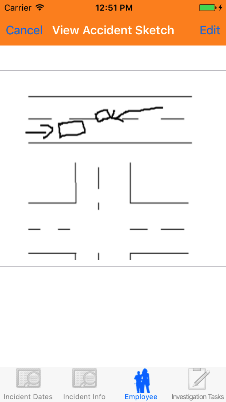 - Tap the Edit button, in the top right corner. The edit accident sketch screen.