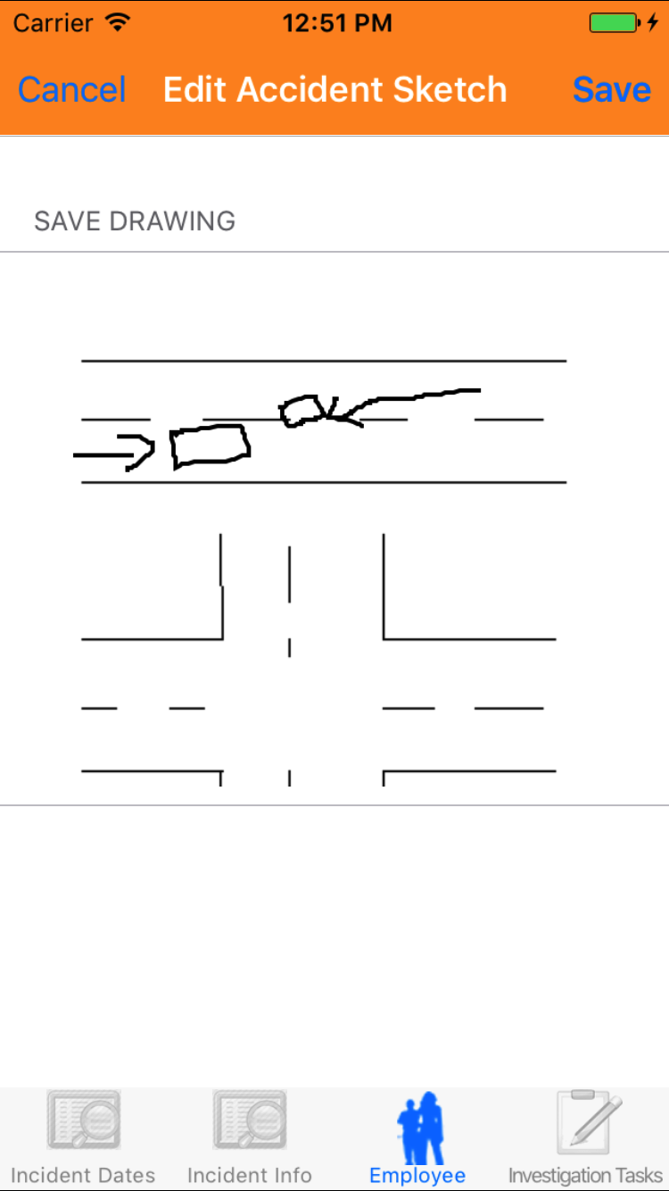 - Tap the Save button, in the top right corner. The edit accident sketch scree screen