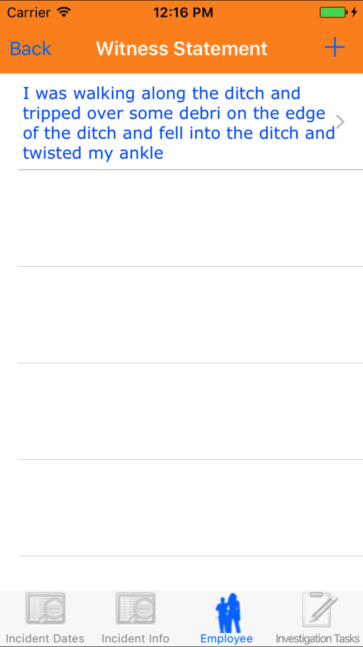 - Tap the + icon in the top right corner to load the add witness statement screen