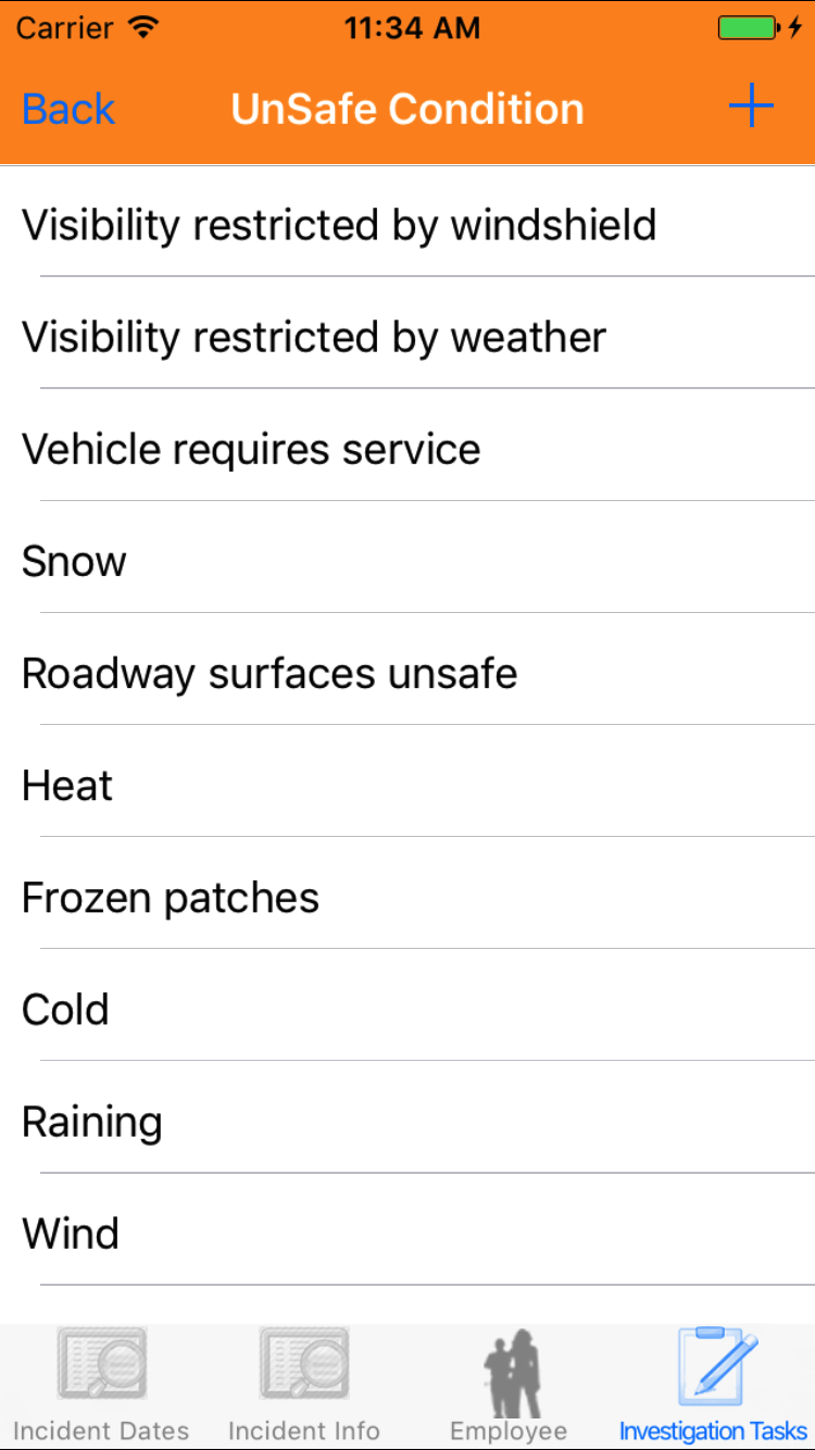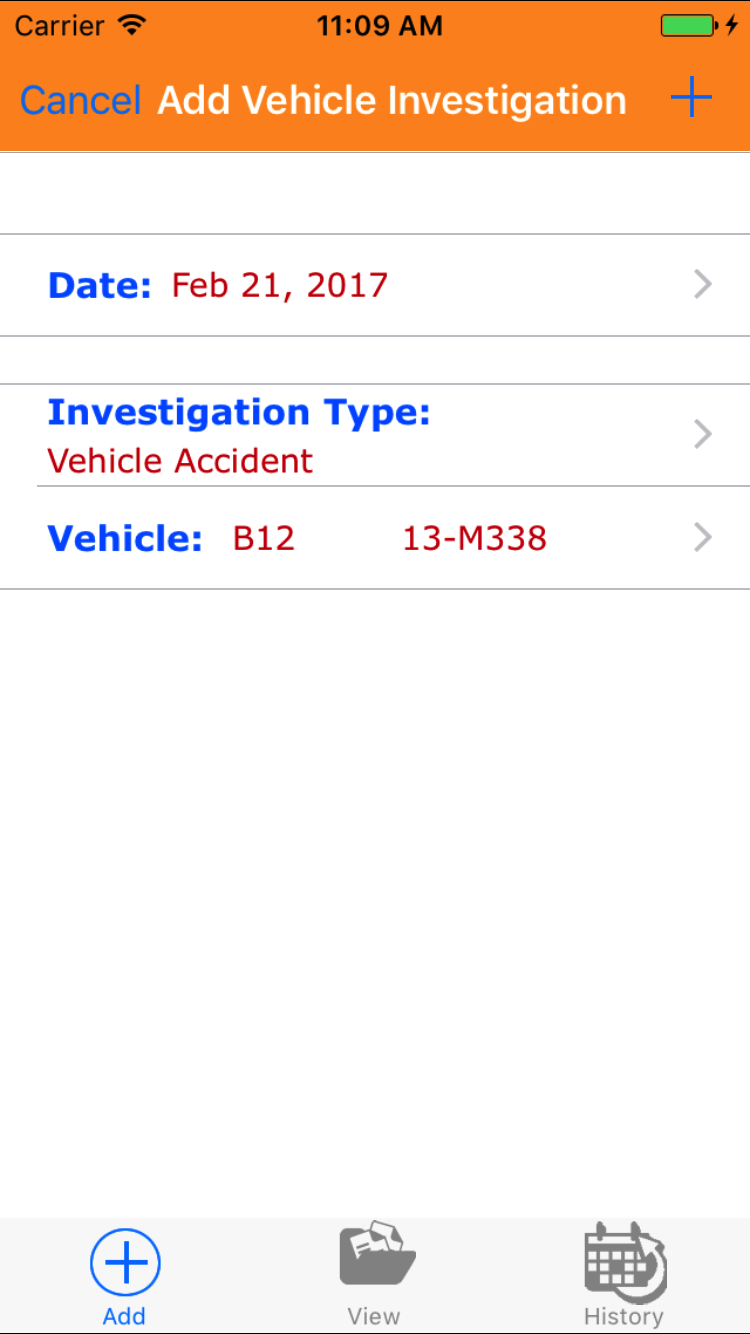 - Tap the + icon in the top right corner to add the Vehicle Investigation.