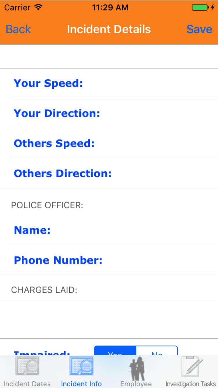 - Impaired: The Impaired field should be set to Yes if driver was impaired at the time of the incident.