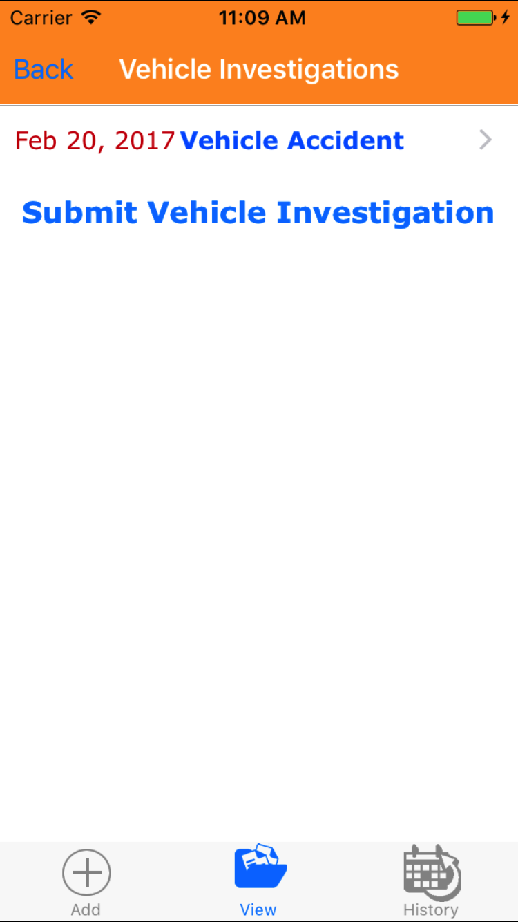 After Vehicle Investigations have been closed out, they will be available to look at through the History view on the iPhone Application.