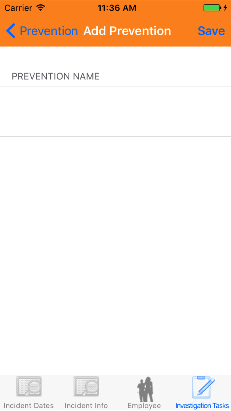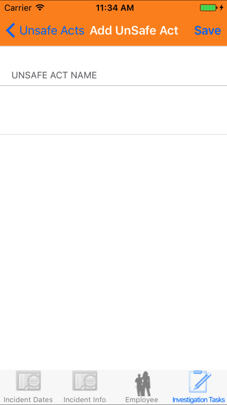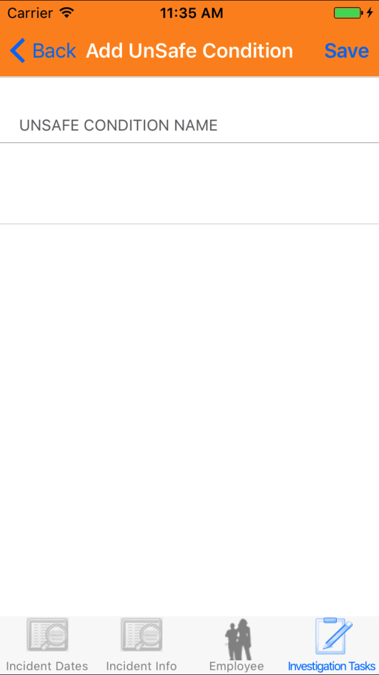 - Tap the Investigation Type field to open the Choose Investigation Type screen.